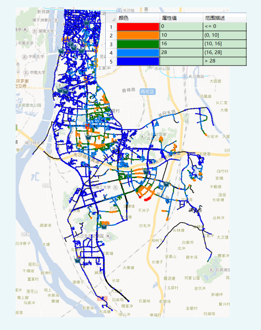 将前期收集的各类数据导入建模软件建立模型,并对模型进行连续多日的校核,建成基于2021年7月运行数据的全管网离线水力模型。建成后的水力模型,压力平均误差在2米以内,流量精度高,地下深埋的管网通过数字和色块展现出来,管段的模拟流速、流量、水损、压力等参数清晰明了。